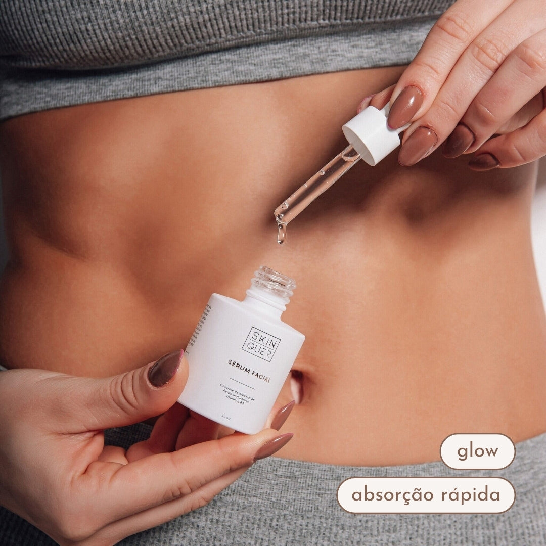 Com o rosto limpo e seco, aplique uma pequena quantidade do Sérum Facial e espalhe por toda a superfície da face. Evite contato direto com os olhos. Não enxágue. Pode ser utilizado diariamente.
